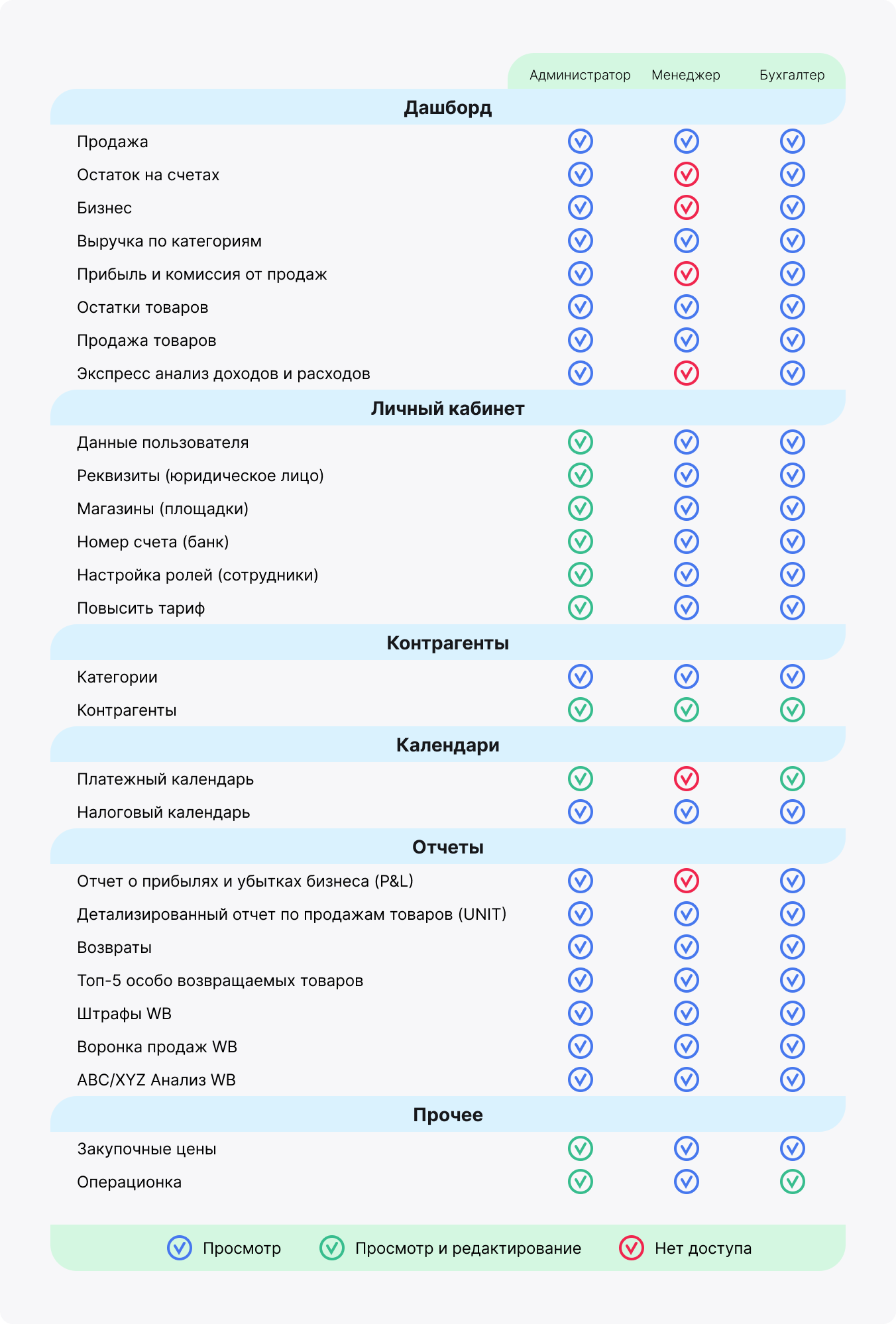 Чтобы избежать ошибок, конфликта данных и случайных изменений, доступы разграничиваются по ролям.