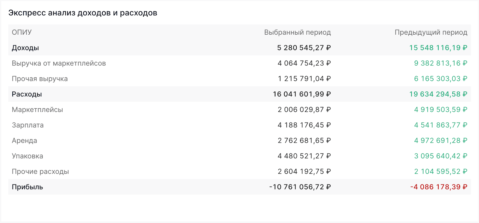 Зачем нужен:Позволяет быстро оценить общее финансовое состояние компании — сравнить, растёт ли прибыль, снижаются ли расходы, и насколько эффективна работа бизнеса в динамике. Полезен для экспресс-оценки результата без углубления в детали.